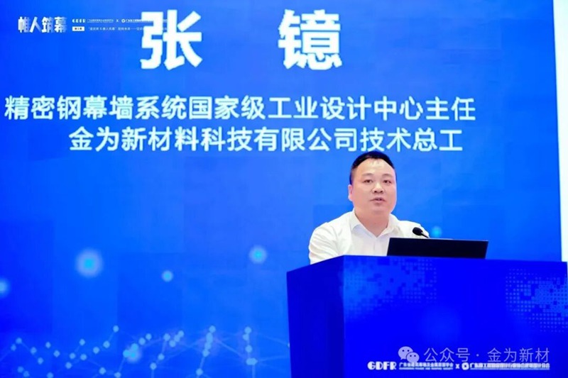 由广东省建筑幕墙及金属屋面学会与广东省工程勘察设计行业协会建筑设计分会联合主办的“帷人筑幕”第5期:“建筑师x帷人筑幕”轻构未来——空间结构创新技术论坛圆满落幕。作为业内高规格的学术交流平台,本次论坛汇聚了众多厉害的建筑师、结构工程师与幕墙工程师,值此仲夏蓬勃之际,共同聚焦新材料、新工艺与创新设计的协同融合,深入探讨建筑形态表达与细部构造的无限可能。在这场探索建筑边界、优化空间性能的盛会上,金为新材作为创新材料与技术解决方案的代表企业,应邀出席并带来精彩分享。公司技术总工张镱先生作为特邀嘉宾,发表了题为《让钢铁实现更多可能》 的主题演讲,向业界同仁展示了金为新材在装配式精密钢幕墙领域的突破与成果。